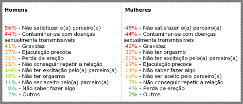 O que preocupa os brasileiros quando oassunto é sexo.*Fonte: Projeto Sexualidade/Universidade de São Paulo (USP)